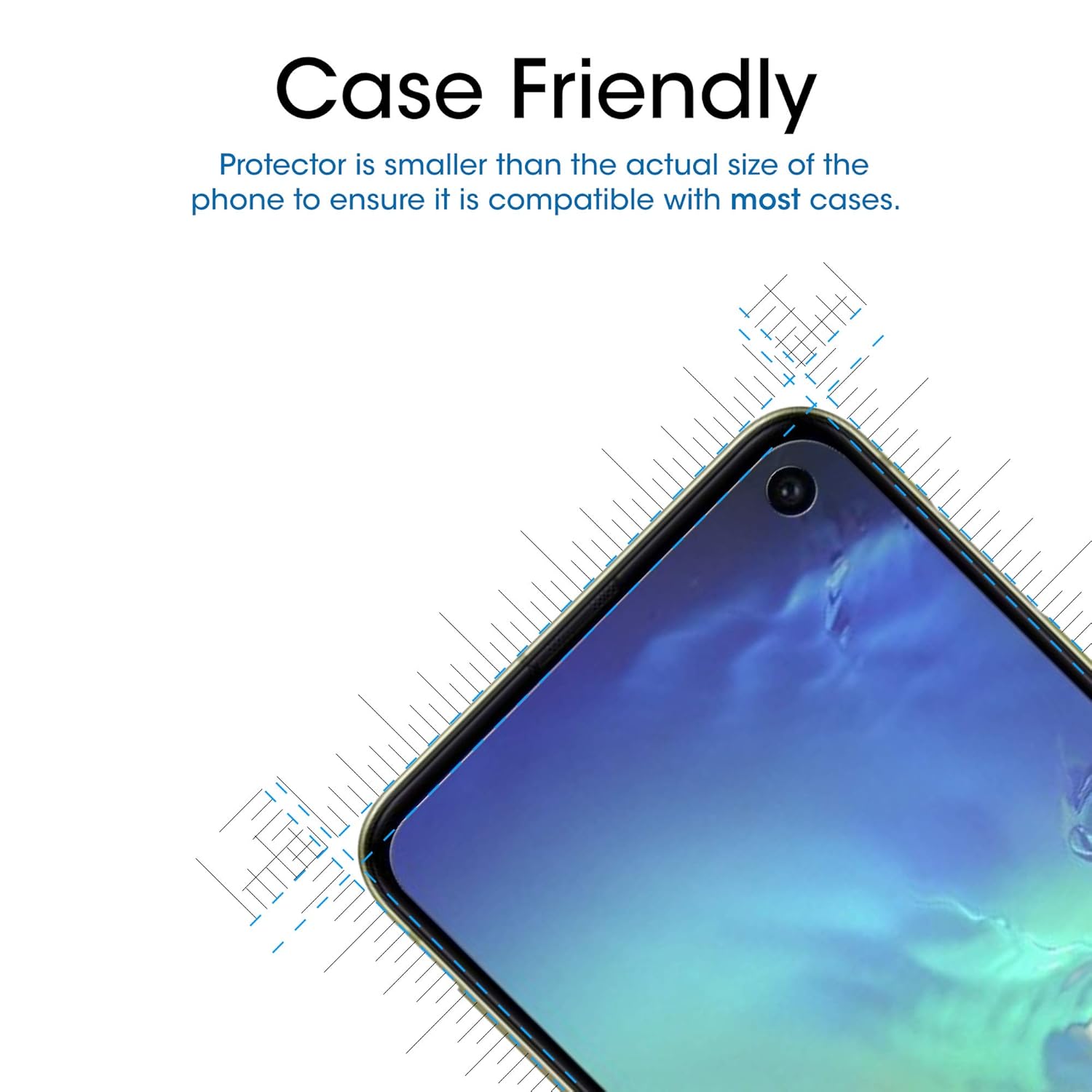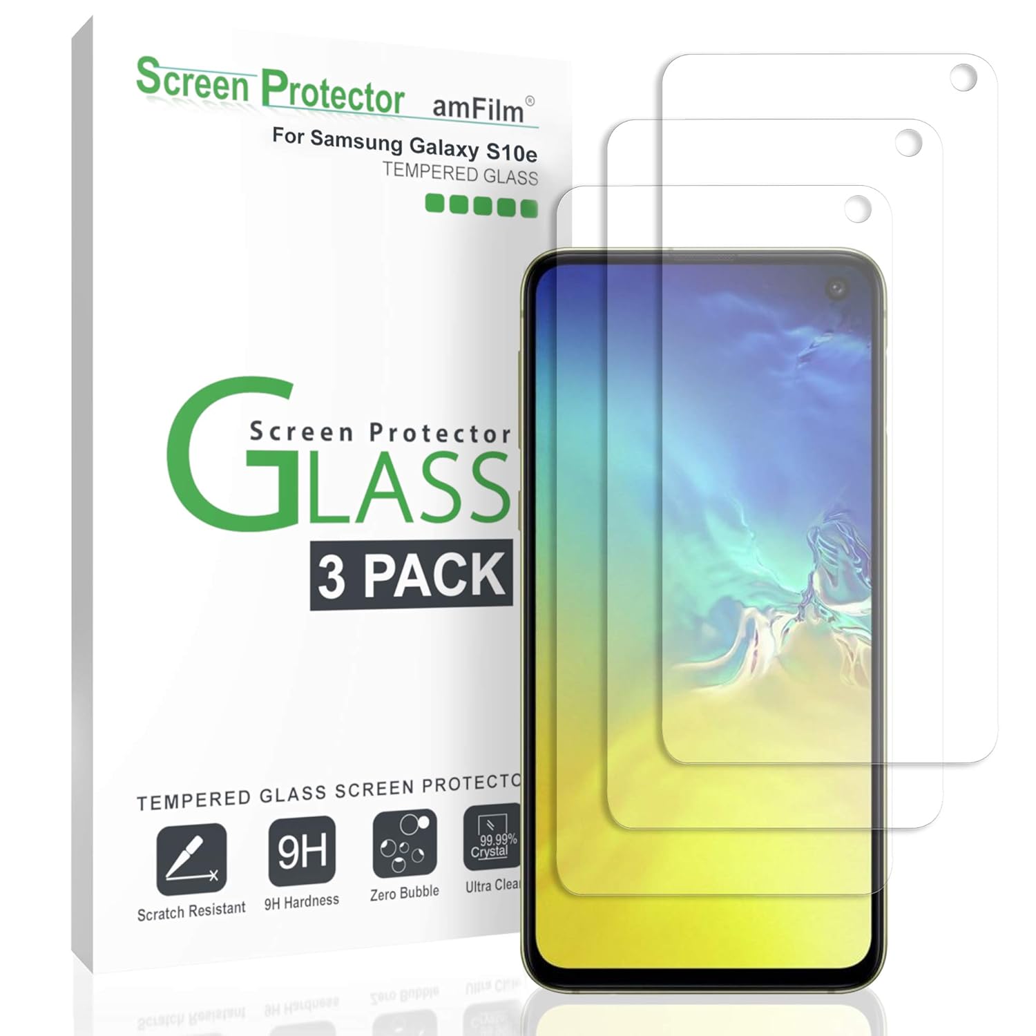 amFilm Premium Glass Screen Protectors are made from superior quality tempered glass, and specifically designed to fit your Samsung Galaxy S10e. These Glass Protectors provide an ultra-clear, natural viewing experience with 99.9% screen transparency and fingerprint/smudge reduction. Plus, they are extremely durable with a surface hardness of 9H, which offers protection from scratches, chips, drops, and other normal signs of wear. These very resilient (.33mm thin) screen protectors will not interfere with the screen sensitivity of your Galaxy S10e, resulting in an optimal user experience.