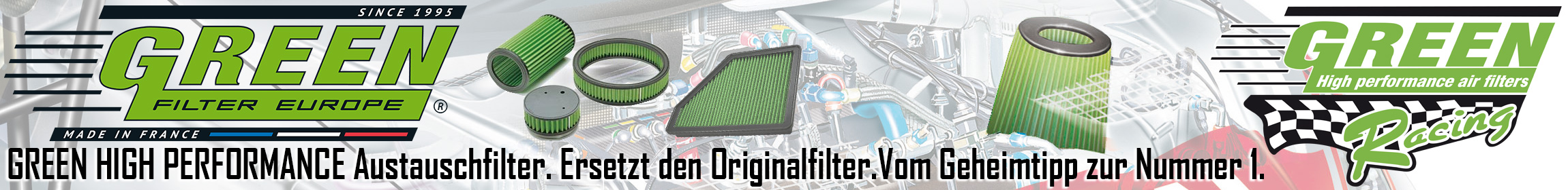 GREEN - Sportluftfilter ersetzen den Standard-Papierfiltereinsatz und beschleunigen den Luftstrom im Ansaugtrakt. Das verbessert den Wirkungsgrad und die Leistung des Motors. Namenhafte Rennteams setzen auf die Filtertechnologie von Green.
