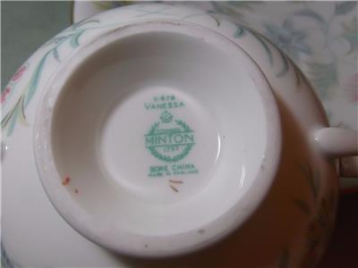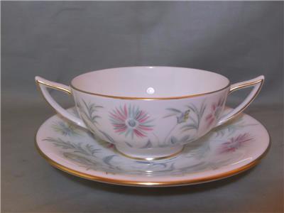 One cream soup cup & saucer in the Vanessa pattern, from Minton Bone China, England.