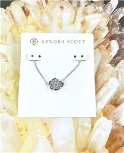 Authentic Kendra Scott Tess Platinum Drusy Pendant Necklace