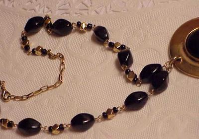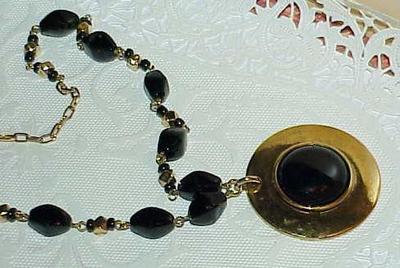 Vintage Unsigned Heavy Gold plate...Gorgeous glass black beads and center |
