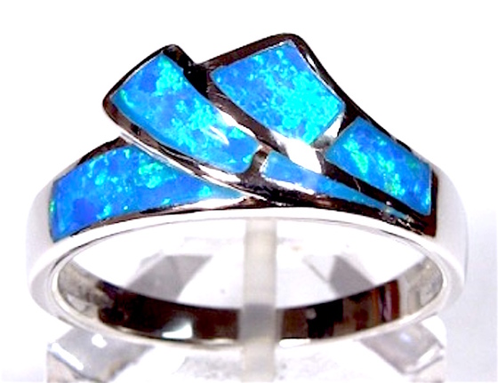 Brand new high quality silver band ring with lab created blue inlay Fire Opal stones on solid 925 sterling silver and stamped with 925. Our silver is genuine 925 sterling silver and Rhodium plated for better quality and prolonged shine. You will receive the item in a gift box. Thanks for looking and check out more items in my Ebay Store for more great items and deals!