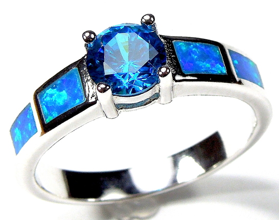 Fabulous brand new high quality sterling silver ring with blue inlay Fire Opals and 6mm faceted round Blue topaz stone set on solid 925 sterling silver and stamped with 925. Our silver is genuine 925 sterling silver and Rhodium plated for better quality and prolonged shine. You will receive the item in a gift box. Thanks for looking and check out more items in my Ebay Store for more great items and deals!