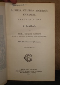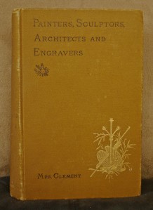 “Painters, Sculptors, Architects, Engravers, and their Works” A Handbook by Clara Erskine Clement published by Houghton, Mifflin and Company, Boston and New York The Riverside Press, Cambridge 1890, eleventh edition This enlarged edition has additional illustrations, an introduction on Schools of Art in Europe, an added appendix on prices paid for valuable works of art and revisions made to the indexes. About this book: This alphabetical listing of the titled painters, sculptors, architects and engravers gives brief description of their works with illustrations and monograms for the more noted artists. It was intended as a handbook for travellers or a convenient reference. [2pp.] frontis [i – ix] x – xliv, 1-681 [2pp.] 19 cm. 7 ½” x 4 ¾” Condition: Boards have light rubbing and edgewear. Spine is sunfaded with a wear at the head and heel. Corners are bumped with rubbing at the tips. Hinges are whole and the binding is solid. The interior is free of any markings. There is a name written on the title page. Otherwise the interior is clean and unmarked. Payment: Payment is expected within 7 days of close of bidding. I will ship within 3 business days of receiving cleared payment – usually sooner. Shipping: I carefully pack your purchase in a box for shipping. In the U.S., it will ship via USPS Media Mail. International buyers please contact me prior to bidding for a shipping quote. I do include delivery confirmation on all of my packages. If you have any questions, please contact me and I will get back to you as soon as possible. Thanks for viewing!
