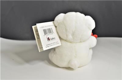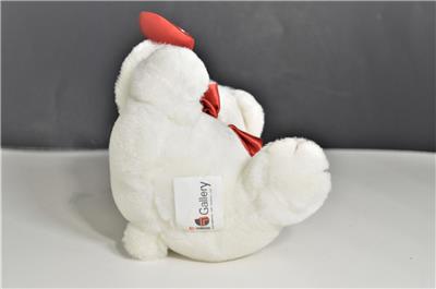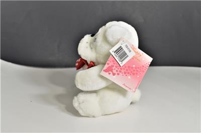 Adorable New "I Love You" Plush White Bull Dog with Red Bow Tie Holding a Red Heart From Store Inventory, New Old Stock