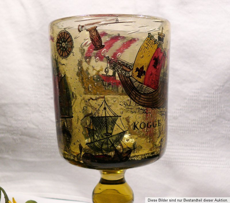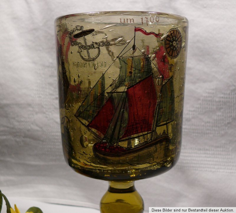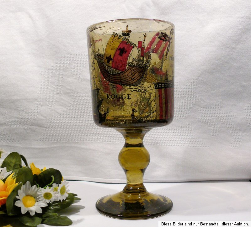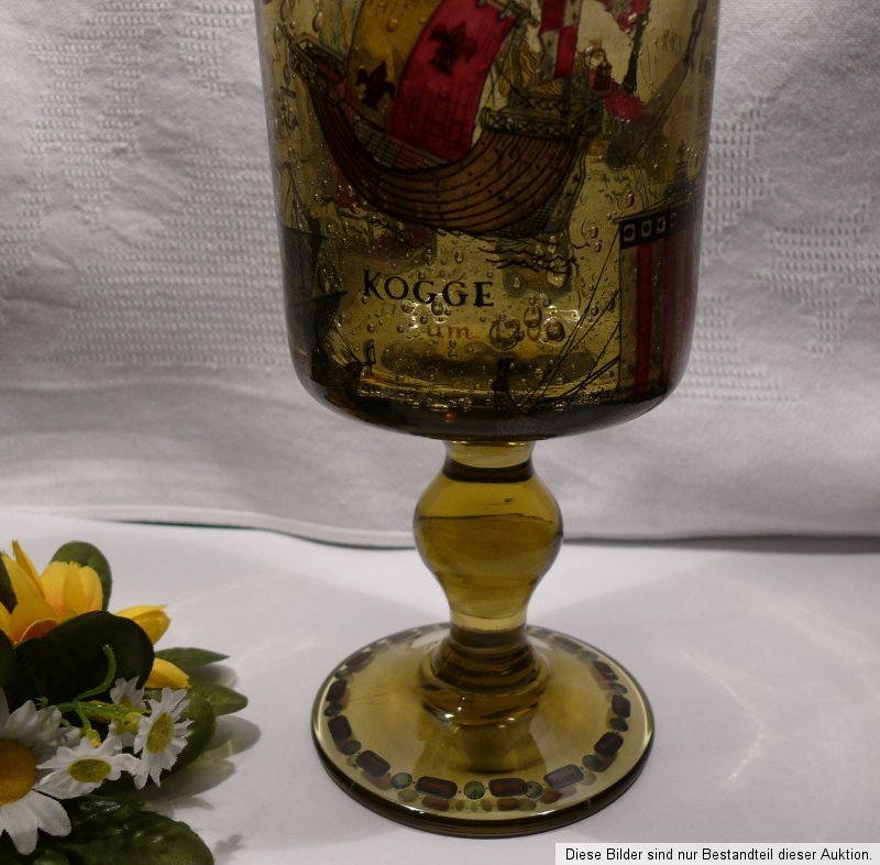 Sie können hier ein schweres, großes Wunderschönes, dickwandiges Pokalglas, mit zahlreichen Lufteinschlüssen, ohne Schaden, erwerben, Höhe: ca. 17,5 cm Lippenrand: ca. 8,5 cm , in einem gutem bis sehr gutem Zustand, Bilder im Glas, Siehe Fotos.