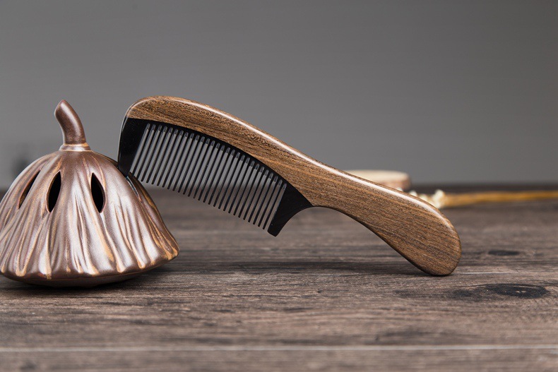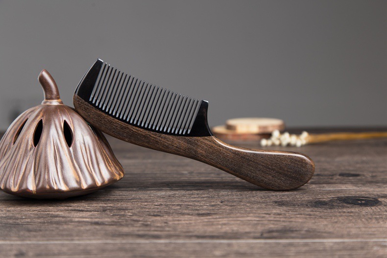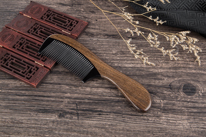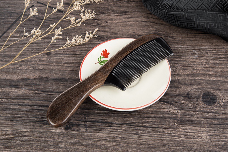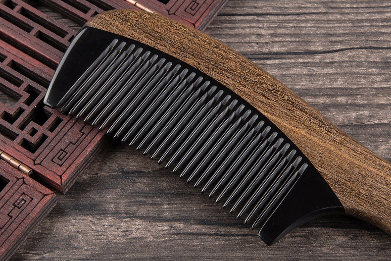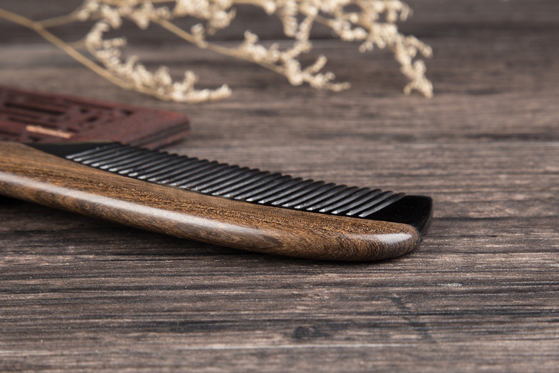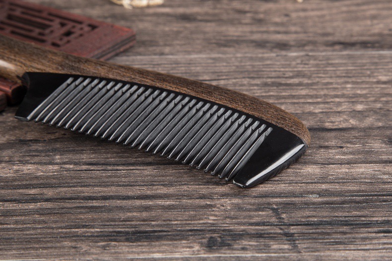 Anti-static Chacate Preto Wood Comb Horn Fine Toothed Comb Curly Hair Brush Freeshipping