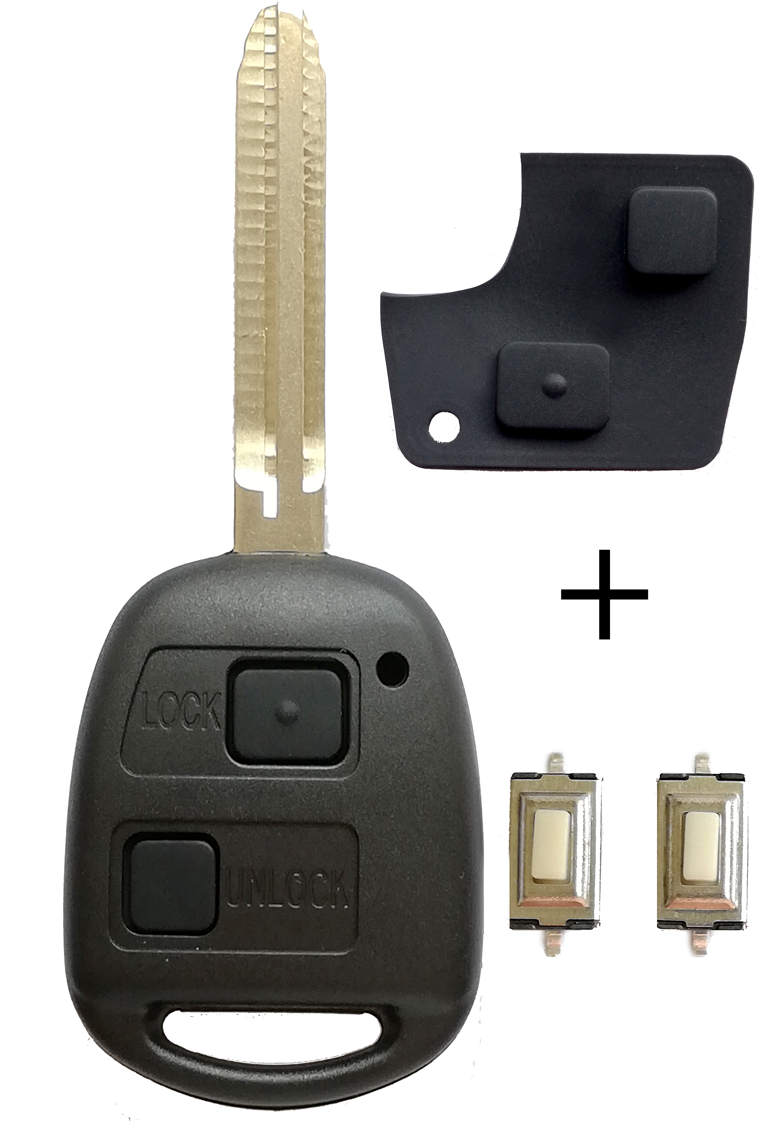 Autoschlüssel 2 Tasten Gehäuse Fernbedienung + Tastenfeld + 2 Mikrotaster
