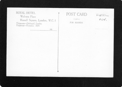 | Royal Hotel Russell Square London ADvertising sepia unused old pc Good cond |