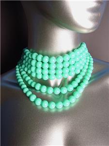 GORGEOUS Graduated 6 Strands Turquoise Blue Beads Layered Choker Necklace & Earrings Set