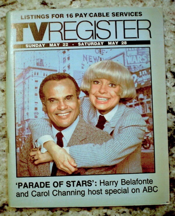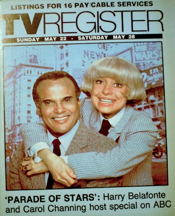 HARRY BELAFONTE CAROL CHANNING PARADE OF STARS TV GUIDE - REGIONAL TV REGISTER OC - ORANGE COUNTY MAY 22, 1983 INCLUDES COA VERY GOOD NO MAILING LABEL! VINTAGE AUTHENTIC ORIGINAL EXTREMELY RARE!!!