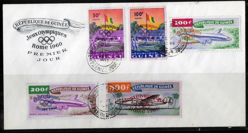 Guinea Stamps # 201-2 & C24-6 XF USED On Cover First Day . Scott Catalogue Value $67.25.