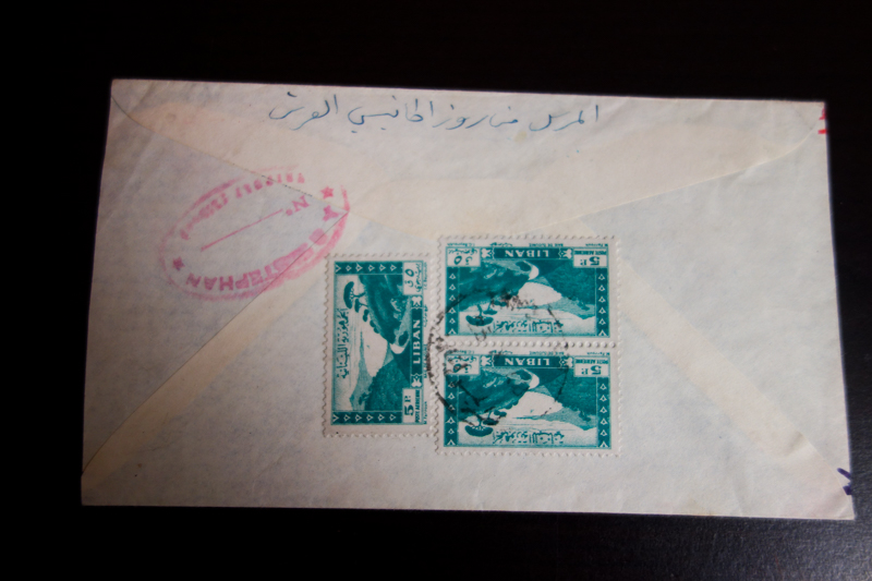 Lebanon #208 on Air Mail Cover to USA Stamps front & back Clean