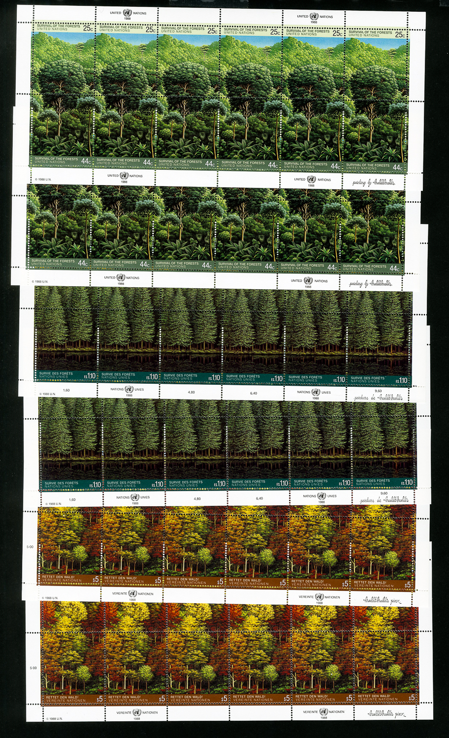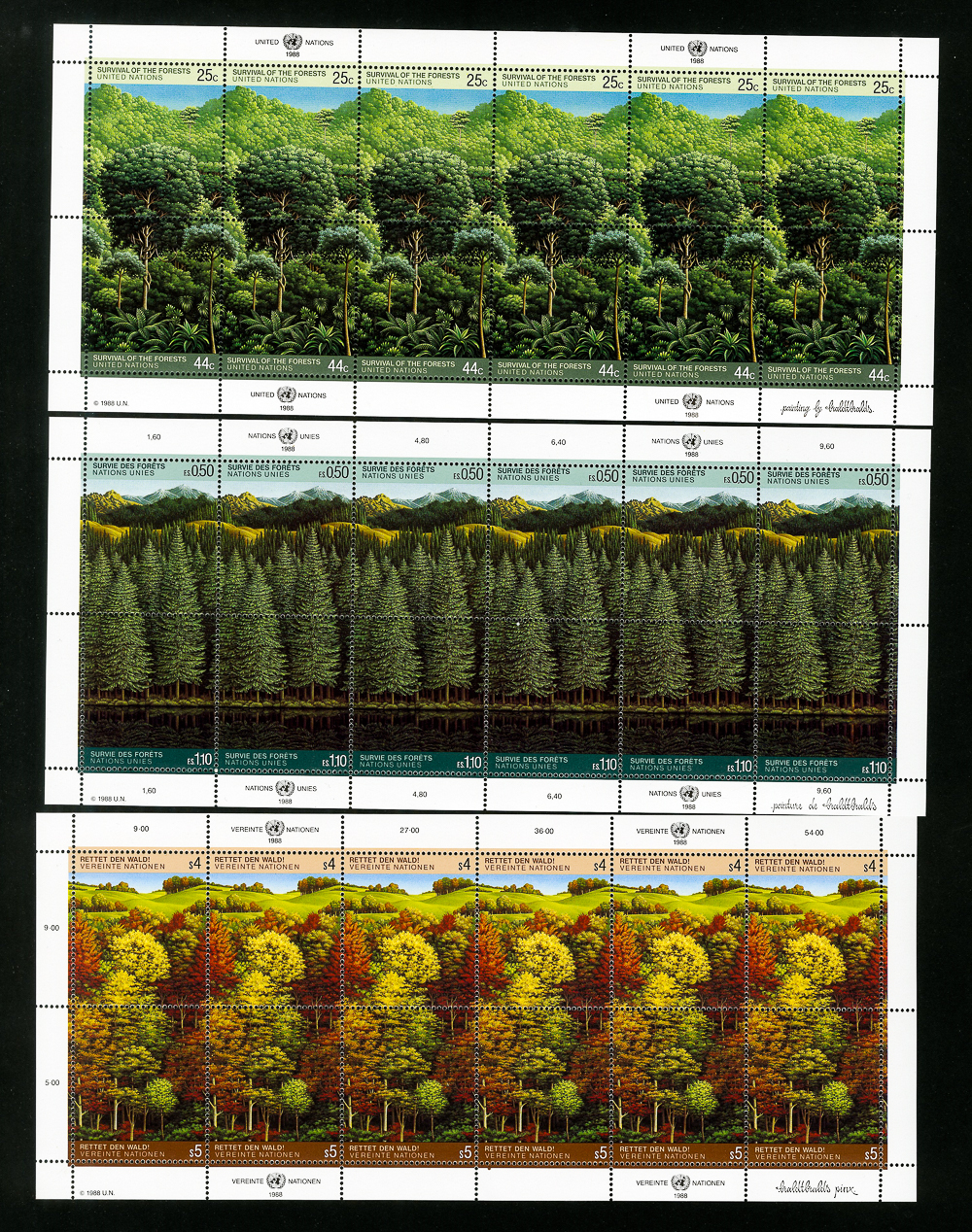 UN Stamps Lot of all 3 Tree Sheets