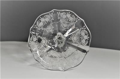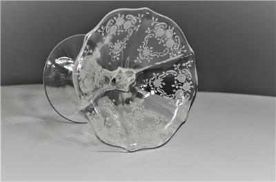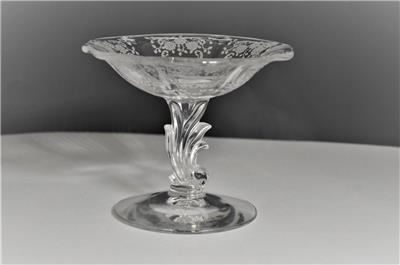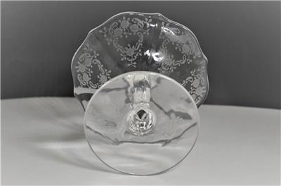 Vintage Fostoria Meadow Rose Clear Baroque Compote, Nut, Candy Floral Etched Blown Glass