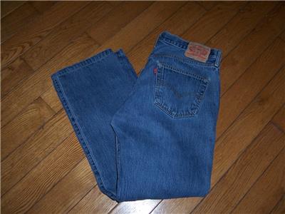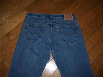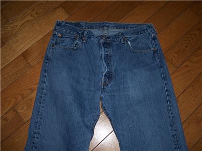 THIS SALE IS FOR THE LEVI'S 501 BUTTON FLY STRAIGHT LEG DENIM JEANS. BUTTON FLY. COLOR MEDIUM VINTAGE WASHED INDIGO BLUE. 100% COTTON. ORIGINAL TAG SIZE 36" W 32" L. ACTUAL MEASURED SIZE IS 36" W LENGTH 30" GUARANTEED AUTHENTIC AND ORIGINAL LEVI'S 501 BUTTON FLY DENIM JEANS. PLEASE NOTE JEANS HAVE BEEN ALTERED IN LENGTH. ORIGINAL 32 NOW 30" L. PLEASE VIEW ALL PHOTOS & REFER TO THE ACTUAL MEASUREMENTS BELOW BEFORE BIDDING.