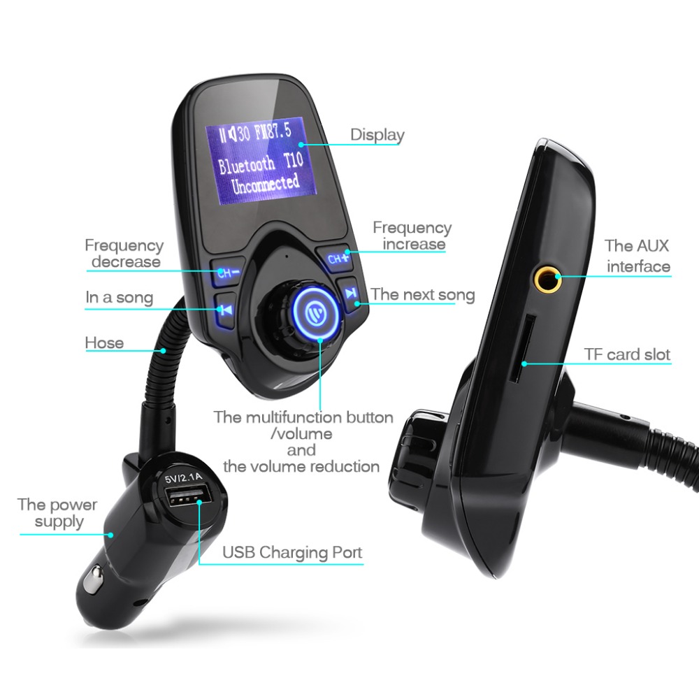 - Package include 1 x bluetooth FM transmitter, 1 x 3.5 mm audio cable