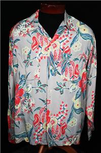 1940'S SILKY RAYON HAWAIIAN LONG SLEEVE SHIRT