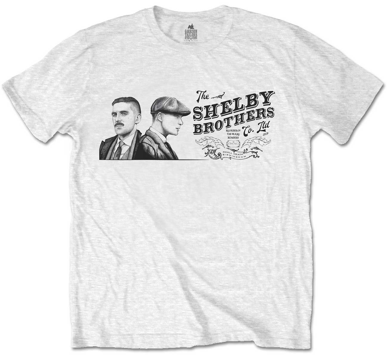 Brand: 100% Official Peaky Blinders 'Shelby Brothers' (White) T-Shirt printed on 100% cotton garment