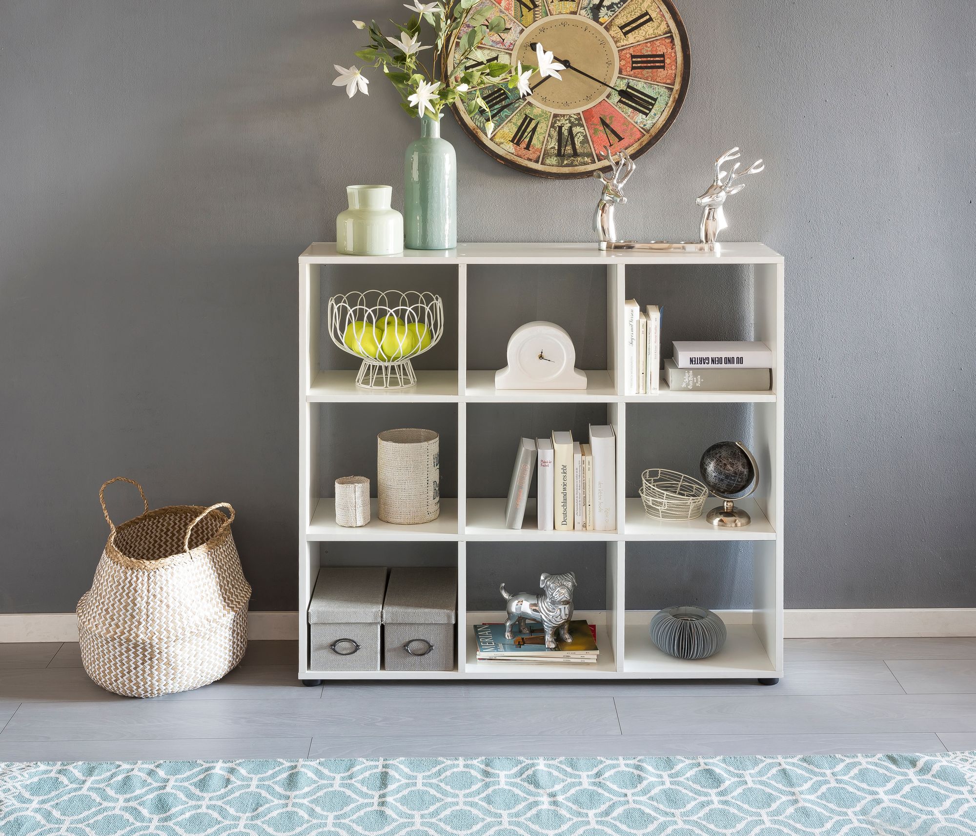 - Zeitloses Wohnregal mit vielen Regalfächern