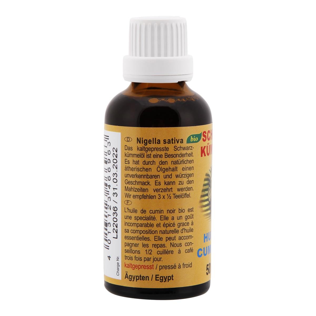 Ingrédients : Huile de cumin noir bio (huile alimentaire)
