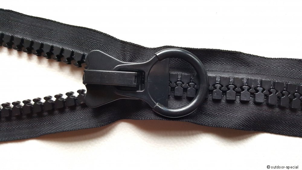 Zu dem Reißverschluß legen wir immer den passenden Schieber dazu, bzw. setzen ihn gleich ein.