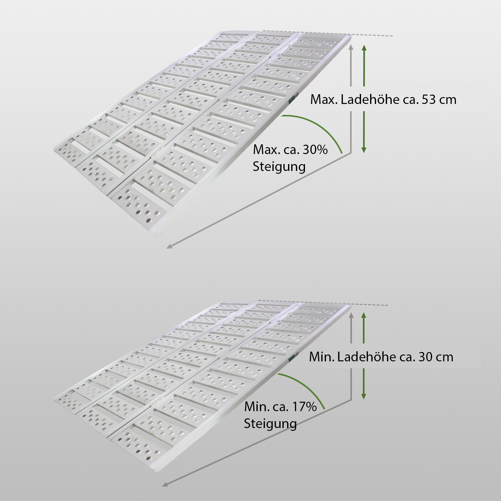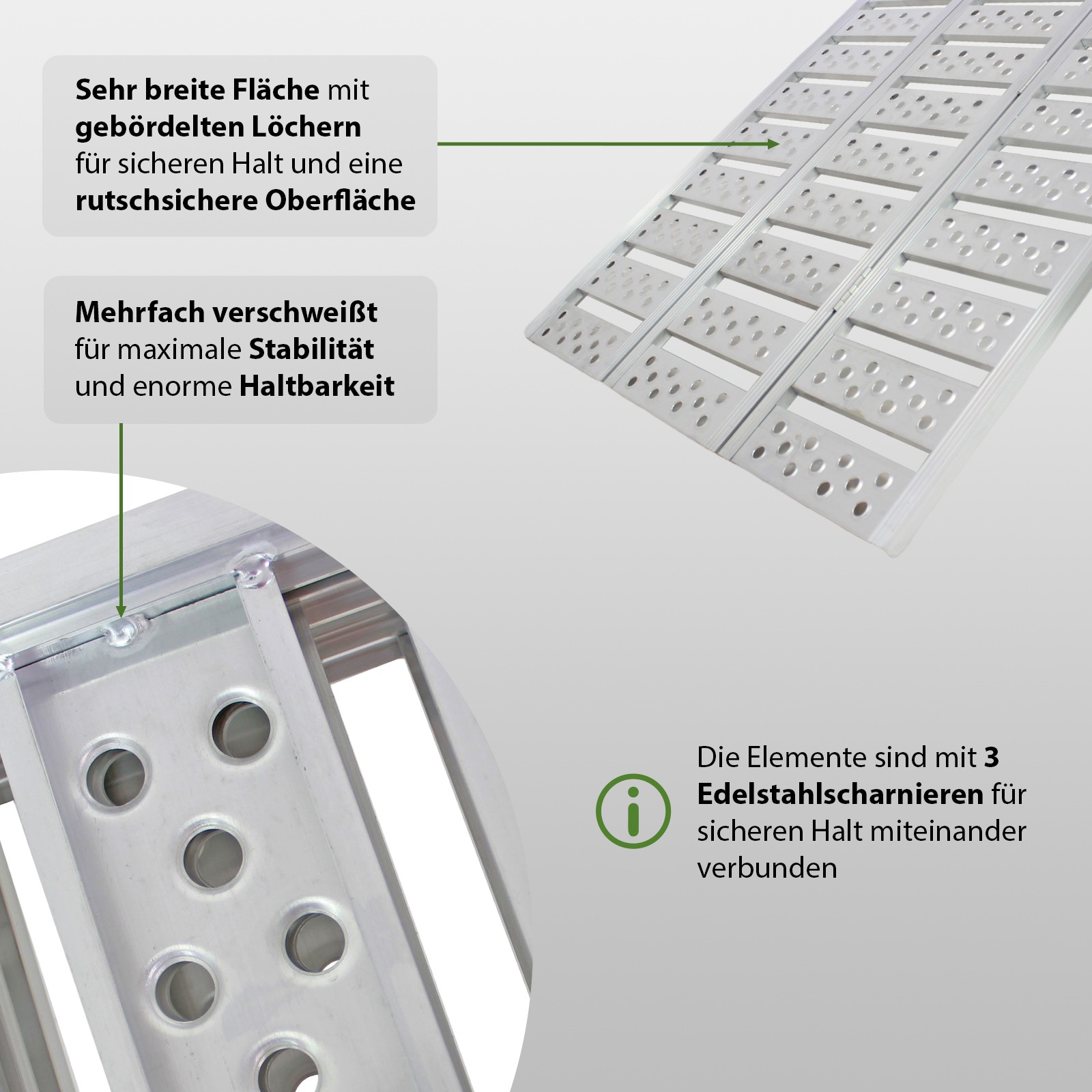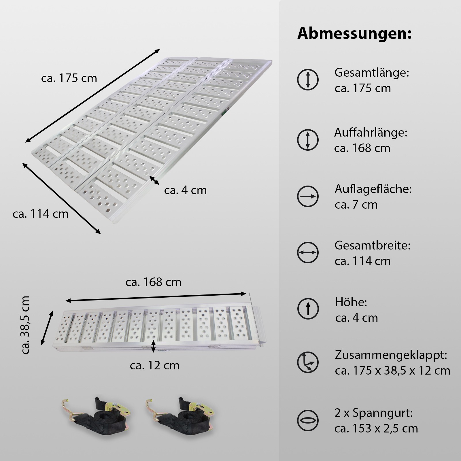 TrutzHolm® Alu Auffahrrampe 175cm Rampe 2 fach faltbar 1020 kg Verladerampe Dreifachrampe Breitrampe Motorradrampe