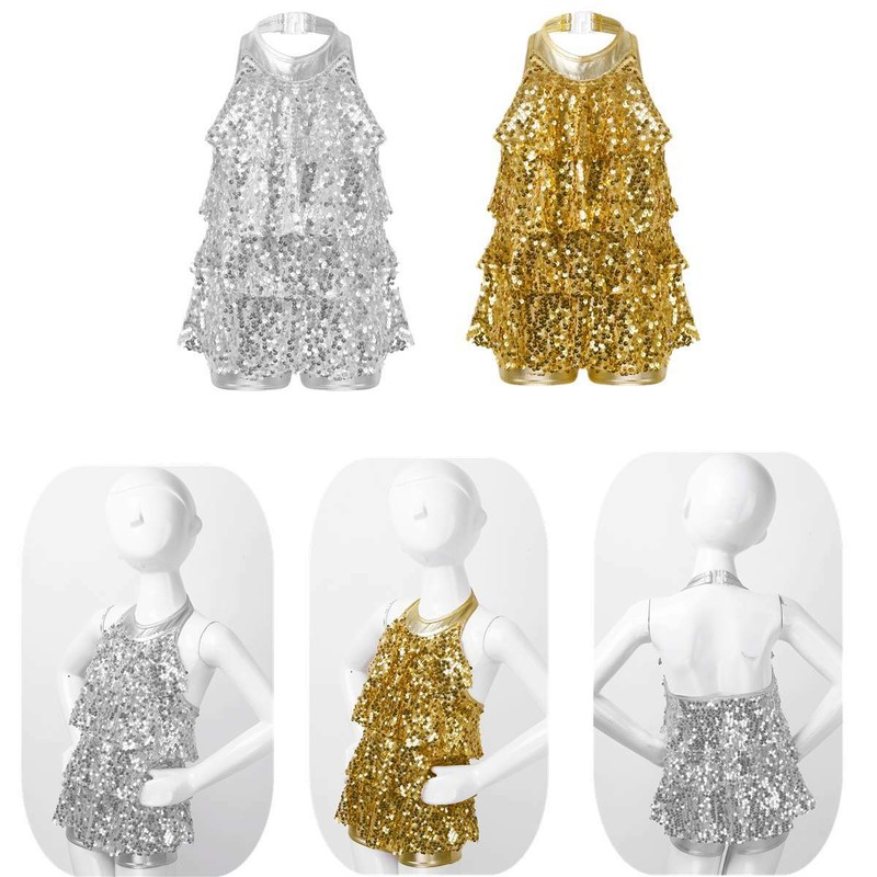 Ruffled glittery mesh skirt is attached around the elastic waist. Beautiful dancewear for your girl.