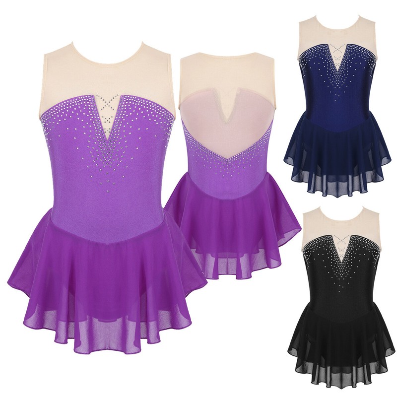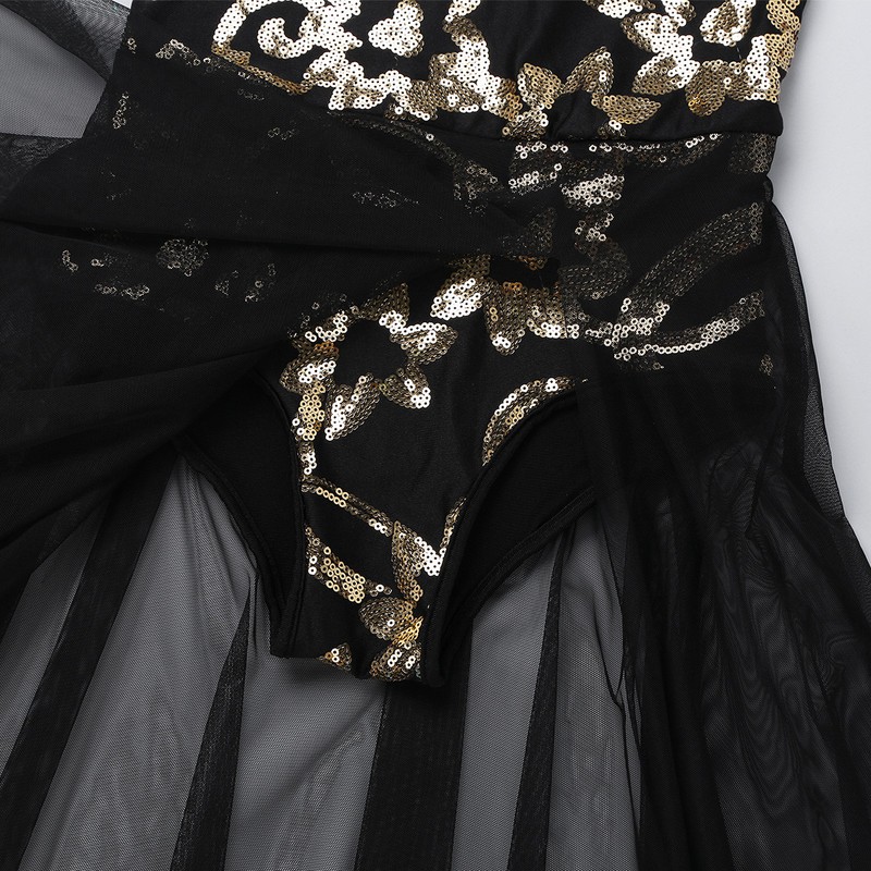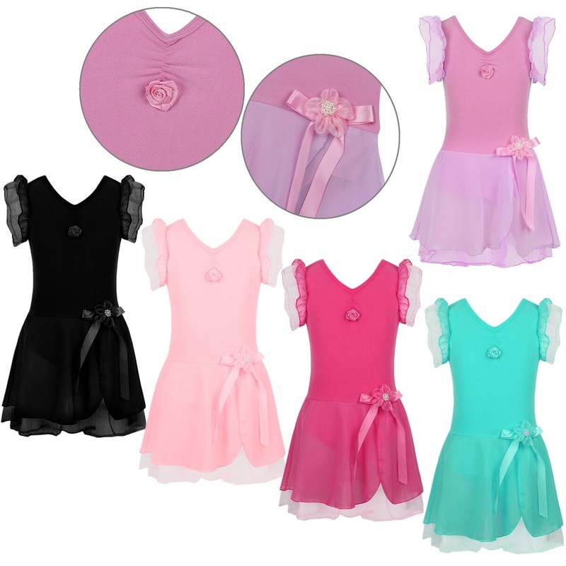 Dance leotard dress is made of polyester and mesh material, hand wash.