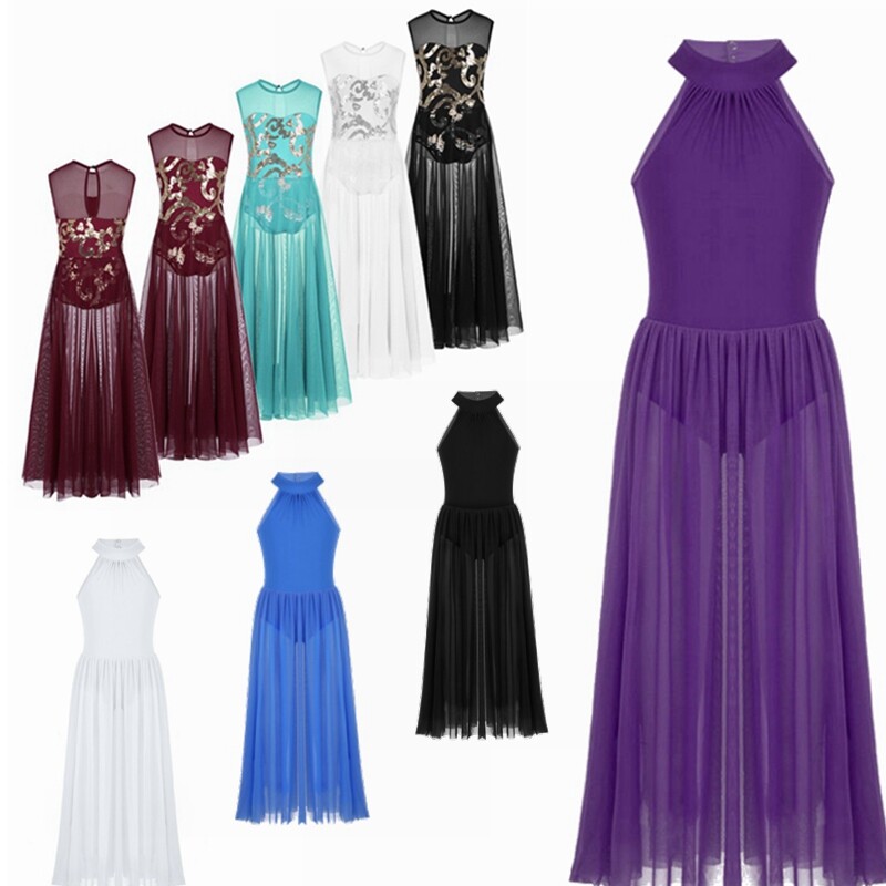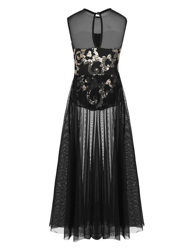1 layer stretchy mesh maxi dress is attached around the waist, side split design. Beautiful dance wear for your girl.
