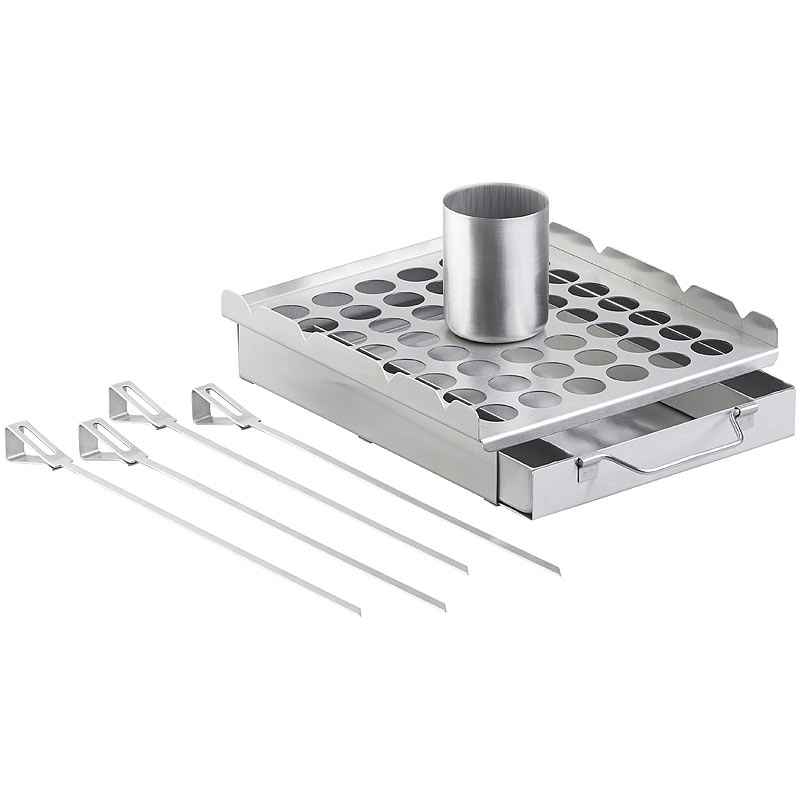 - Multifunktional einsetzbar: als Hähnchenbräter, Räucherbox, Spießhalter, Gemüse-Grillständer und Grillrost
