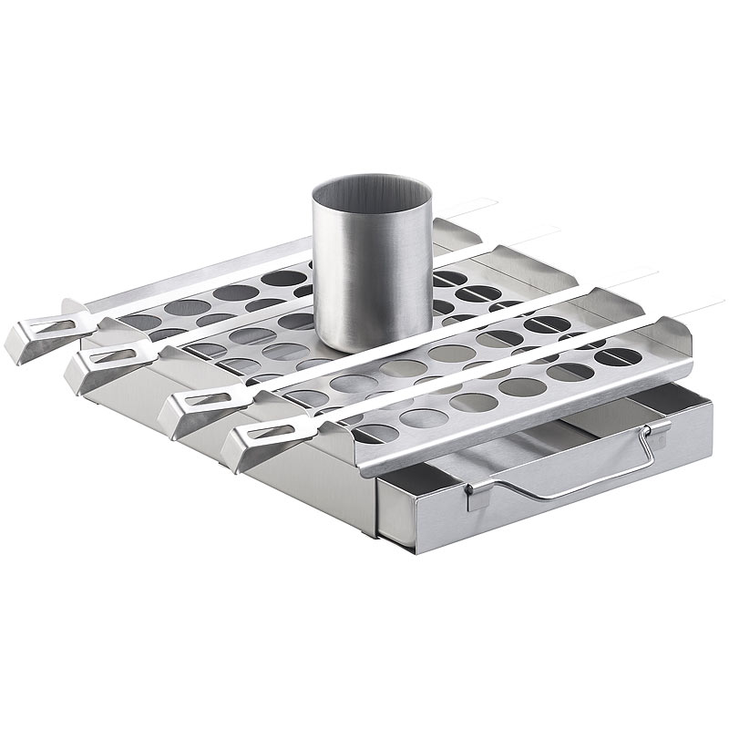 - Perfekt für Schaschlik-Spieße: einfaches Drehen und Wenden dank Halterung