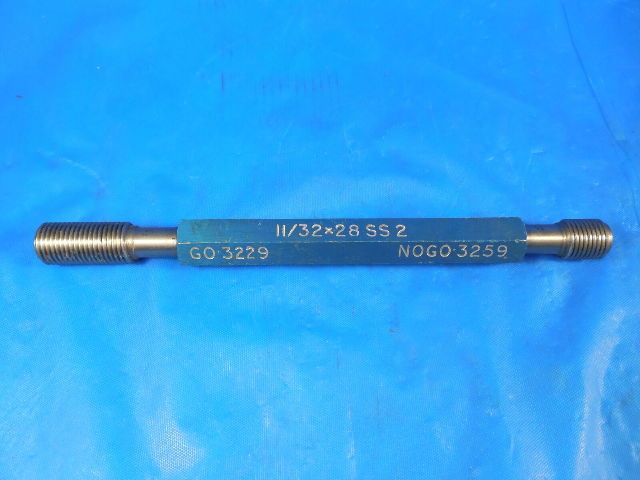11/32 28 SS 2 THREAD PLUG GAGE .34375 GO NO GO PD'S = .3229 & .3259 CL2 11/32X28