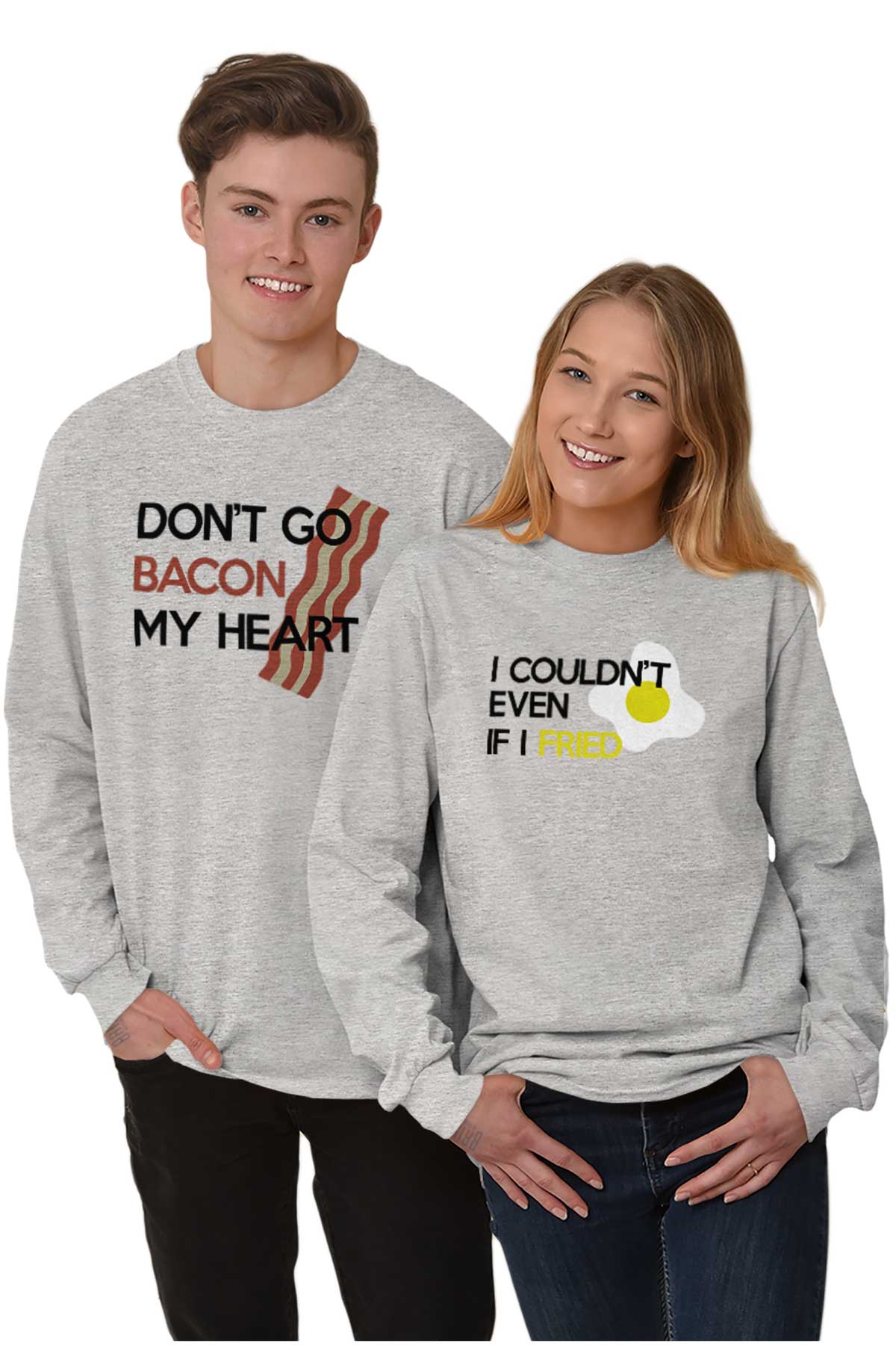 Oh yeah sing it Elton John and Kiki Dee! "Don't go bacon my heart, I couldn't even if I fried." Nothing like a morning breakfast sing-a-long with corny bacon and eggs puns to start the day off right. If you are a couple wearing this cute T Shirt then you are simply a perfect couple. Nothing is better than breakfast food- in fact; eating breakfast for dinner is probably one of the best meals around. You and your significant other will look great in this cute T Shirt T Shirt