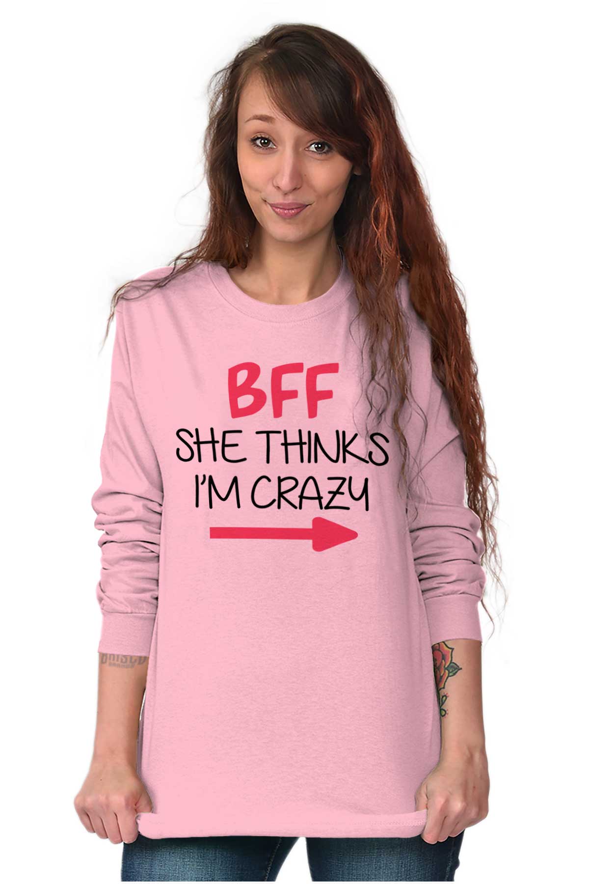 Friendship has no barriers. Friendship shouldn't fade away like lovers do. You and your BFF know everything about each other, especially how crazy both of you can be. No matter what you two stick together and that is important. Like when you broke into the water park at night to ride the rapids or when your friend became an air traffic controller to see if she can get a plane to flip... Nothing will come between you two and that’s why this funny Long Sleeve T Shirt is perfect.Long Sleeve T Shirt