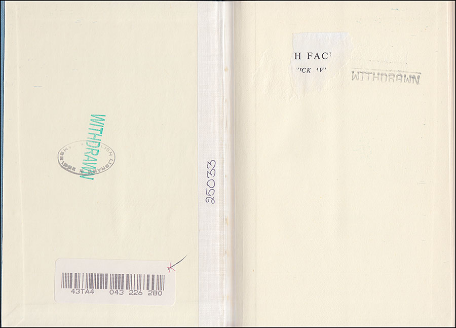(over-stamped "Withdrawn") and a rectangular plain white label on the rear