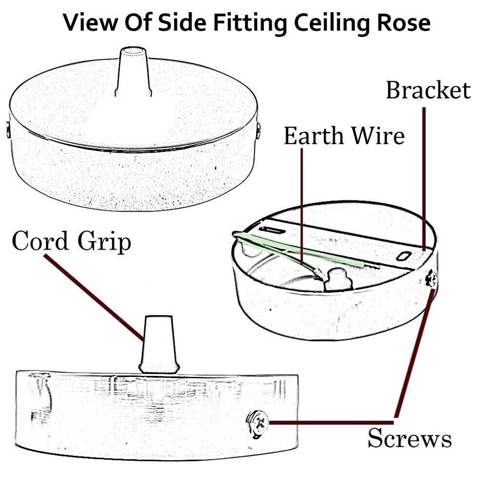 - Round metal Ceiling rose comes with Cord grips.
