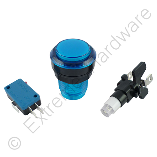 2 x Blue 5V LED T10 28mm Round Illuminated Arcade Push Buttons & Microswitches