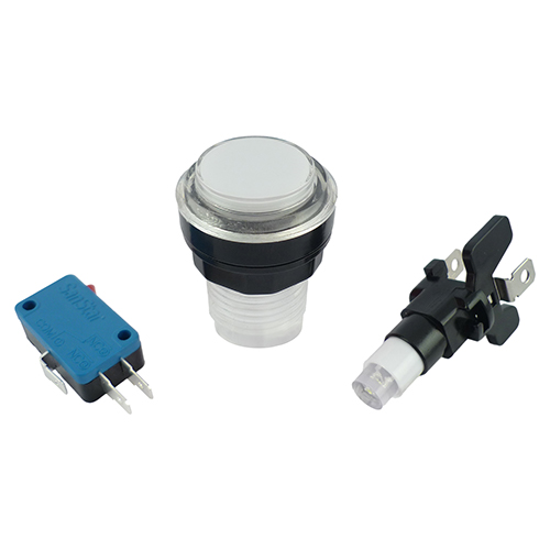 4 x White 5V LED T10 28mm Round Illuminated Arcade Push Buttons & Microswitches