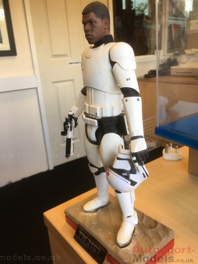 This is a modified Hot Toys HT902536 First Order Stormtrooper using the Hot Toys head sculpt HT902625 and the figure stand HT902649