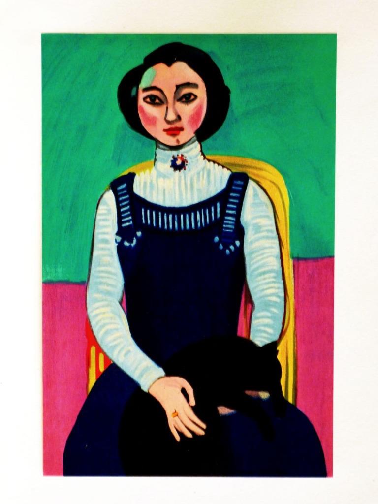 ORIGINAL “MARGUERITE MATISSE, JEUNE FILLE AU CHAT, 1910”, COLOR LITHOGRAPH BY HENRI MATISSE, LIMITED EDITION, PRINTED BY MOURLOT FRERES IN 1954