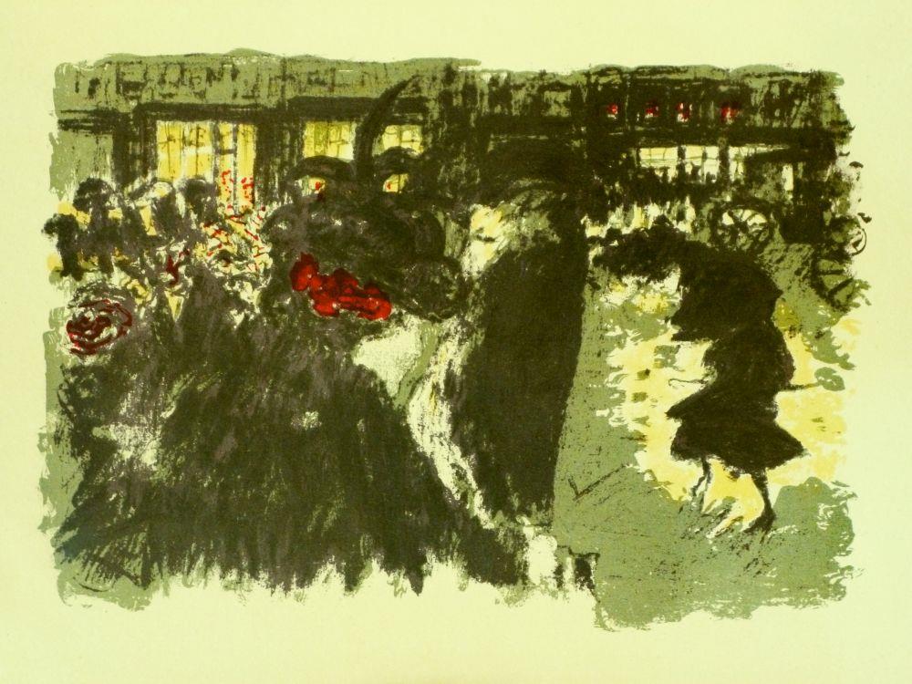 ORIGINAL COLOR LITHOGRAPH BY PIERRE BONNARD, “QUELQUES ASPECTS DE LA VIE DE PARIS - PLACE LE SOIR”, LIMITED EDITION, PRINTED BY MOURLOT FRERES IN 1952