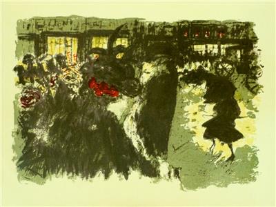 PRINT ORIGINAL COLOR LITHOGRAPH BY PIERRE BONNARD, “QUELQUES ASPECTS DE LA VIE DE PARIS - PLACE LE SOIR”, LIMITED EDITION, PRINTED BY MOURLOT FRERES IN 1952