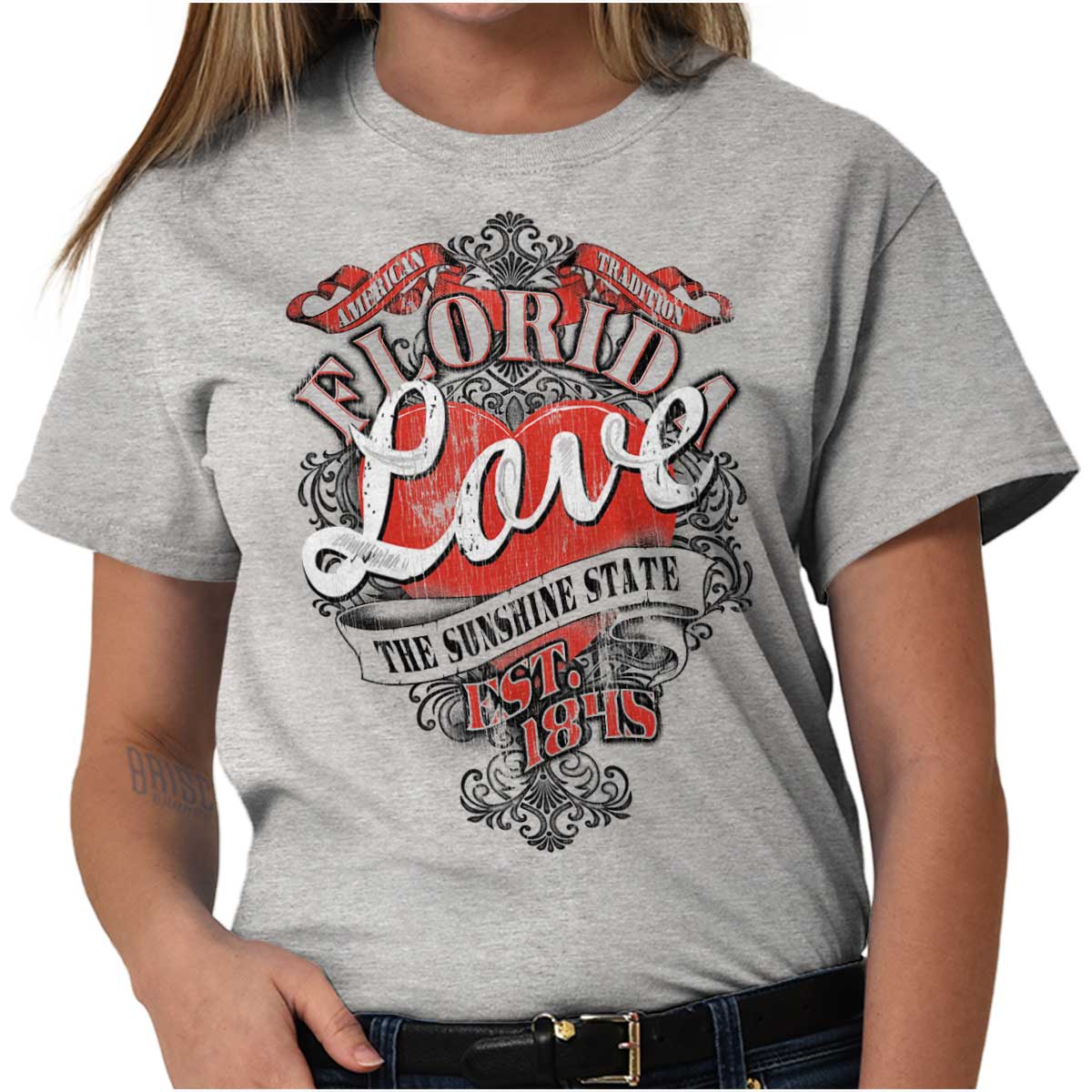 Florida is a magical place. With this Ladies T Shirt, you can radiate the love and romance of this state.This creative design will be great for all those hopeless romantics out there. Did you leave your heart in Florida?With this Ladies T Shirt, you can always be sure to wear your heart on you sleeve if you don't already.