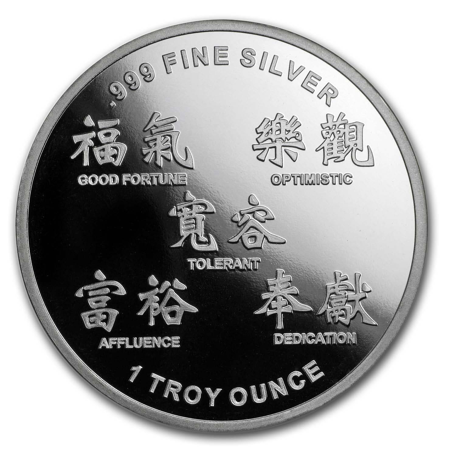 - Reverse: The Chinese characters for attributes of Year of the Pig with the weight and purity.