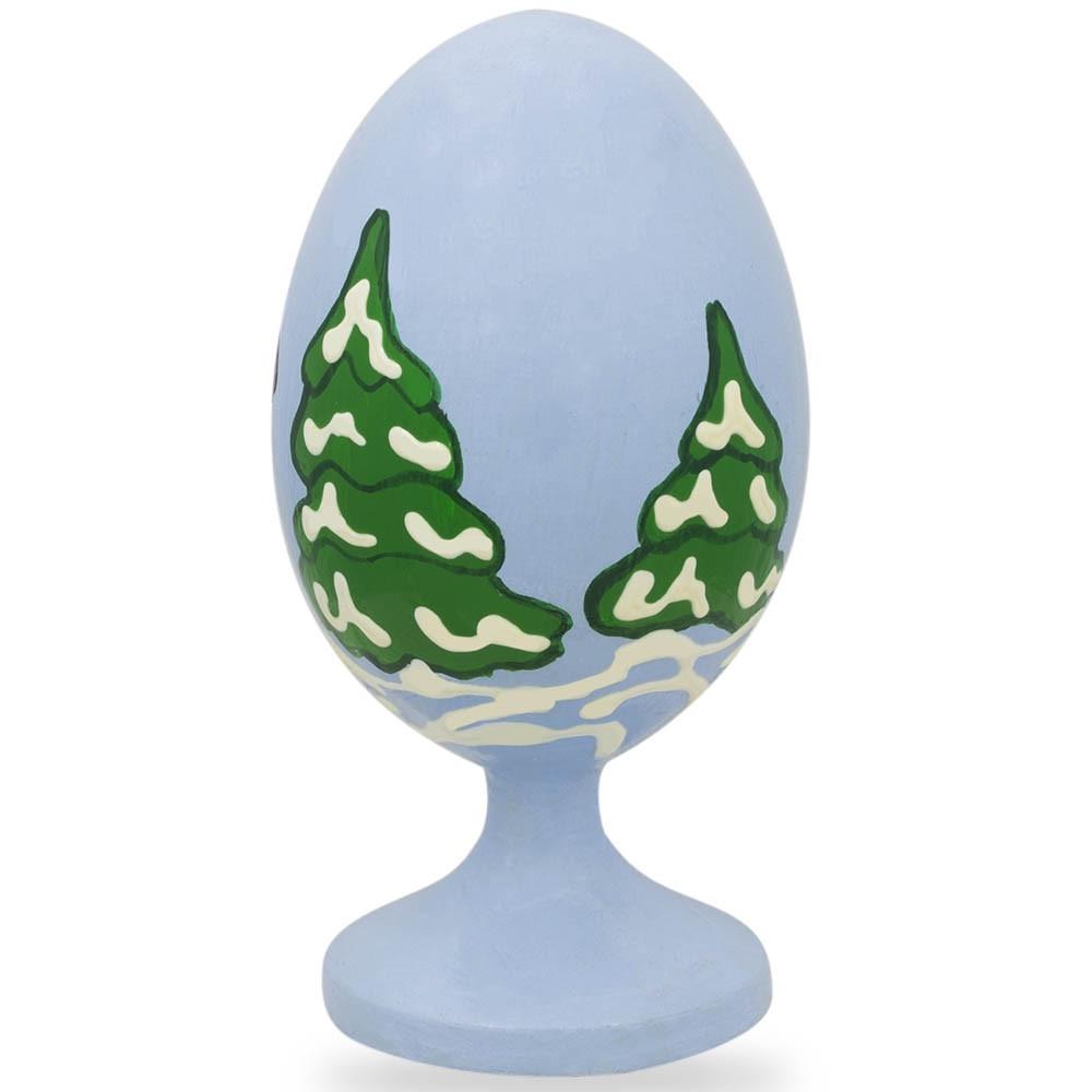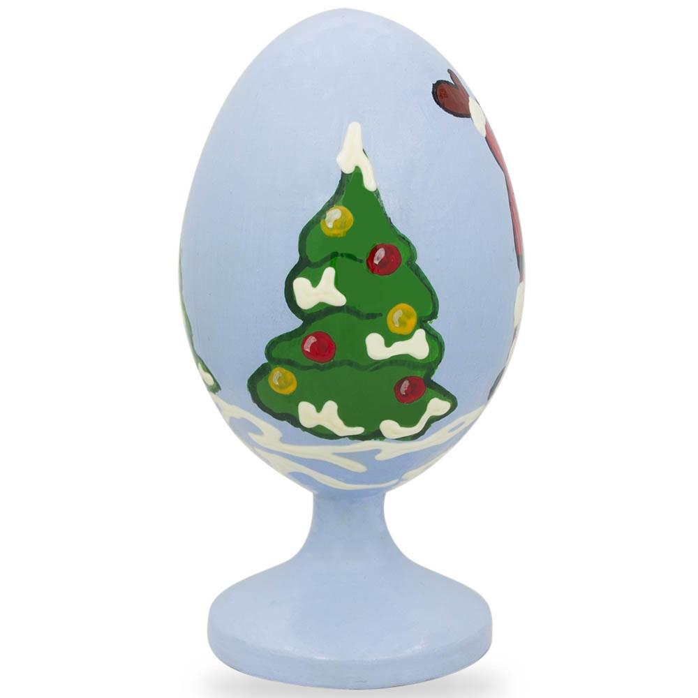 This beautiful hand painted egg figurine depicts a happy Santa celebrating near Christmas trees. A skilled artist makes this beautiful egg stand out, making it a perfect gift for Christmas or Winter decoration.