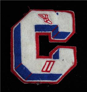 VINTAGE 1960'S-1970'S SCHOOL TRACK RED, WHITE, AND BLUE WOOL AND CHENILLE PATCH