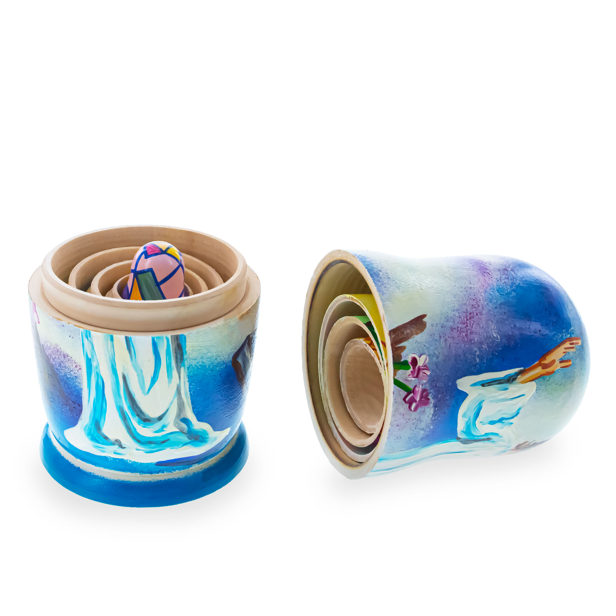 Set of 5 Jesus Christ Rising, Angel and Easter Eggs Wooden Nesting Dolls 6 Inches