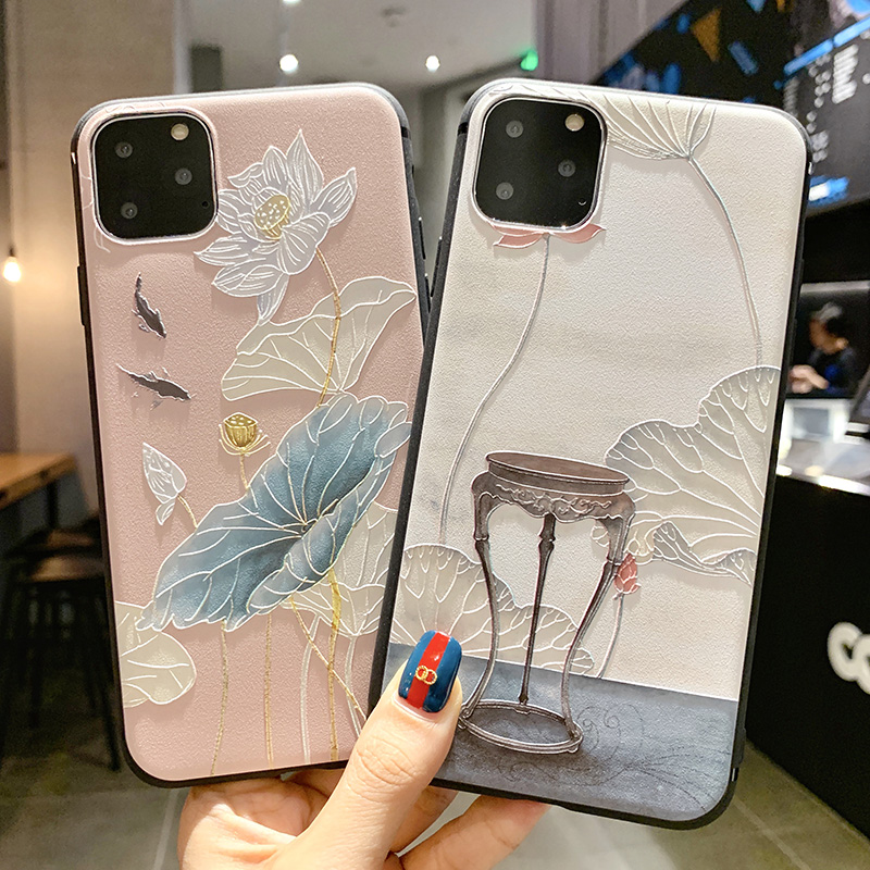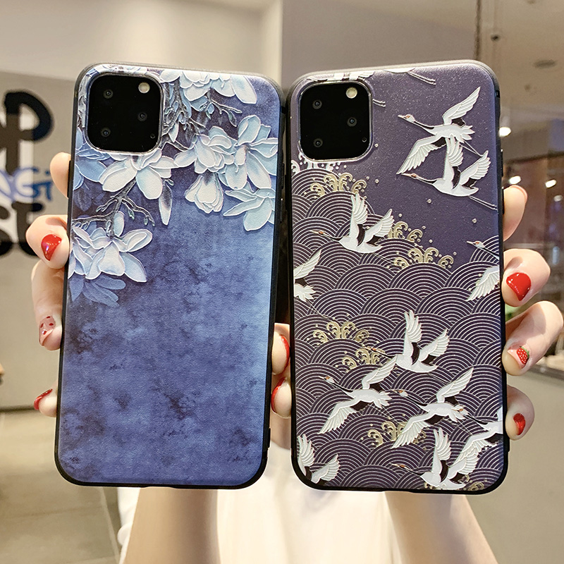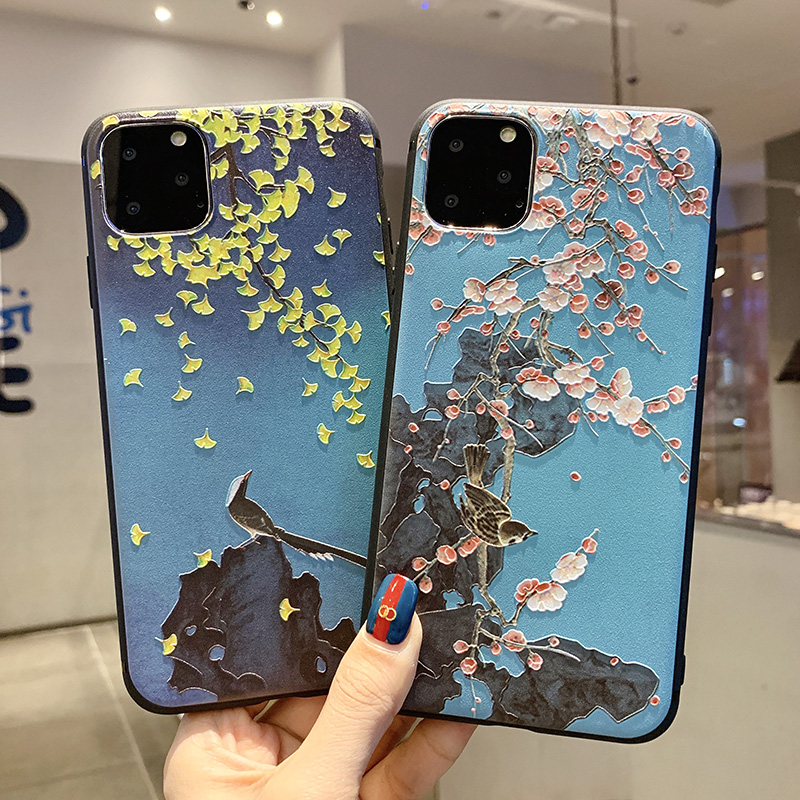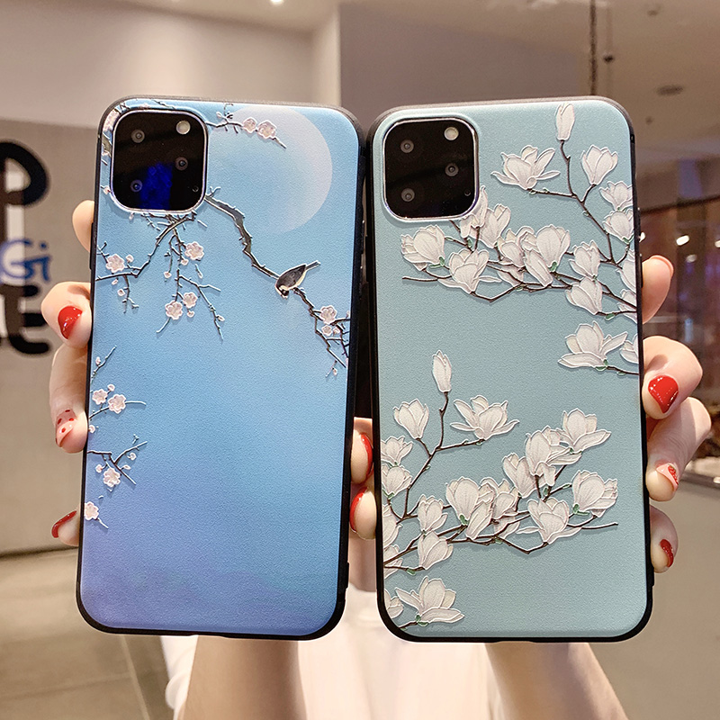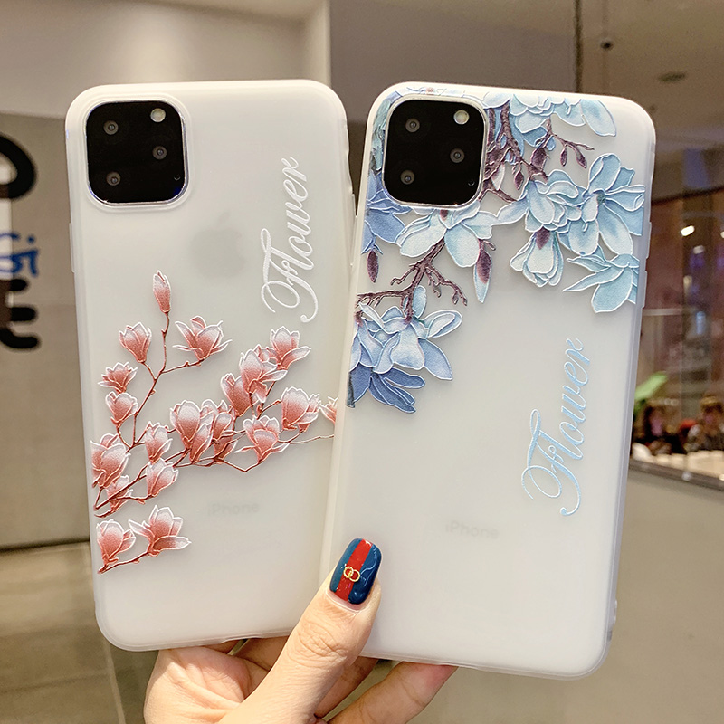 For iPhone 11 Pro Max XR XS 8 3D Floral Bloom Relief Pattern TPU Soft Case Cover