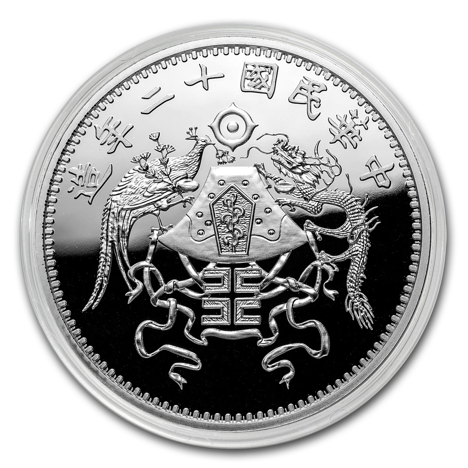 - Obverse: Depicts a Dragon and Phoenix along with the national emblem of the Twelve Symbols, as well as the inscription in Chinese characters, reading from left to right that read Created in the 12th Year of the Republic of China.
